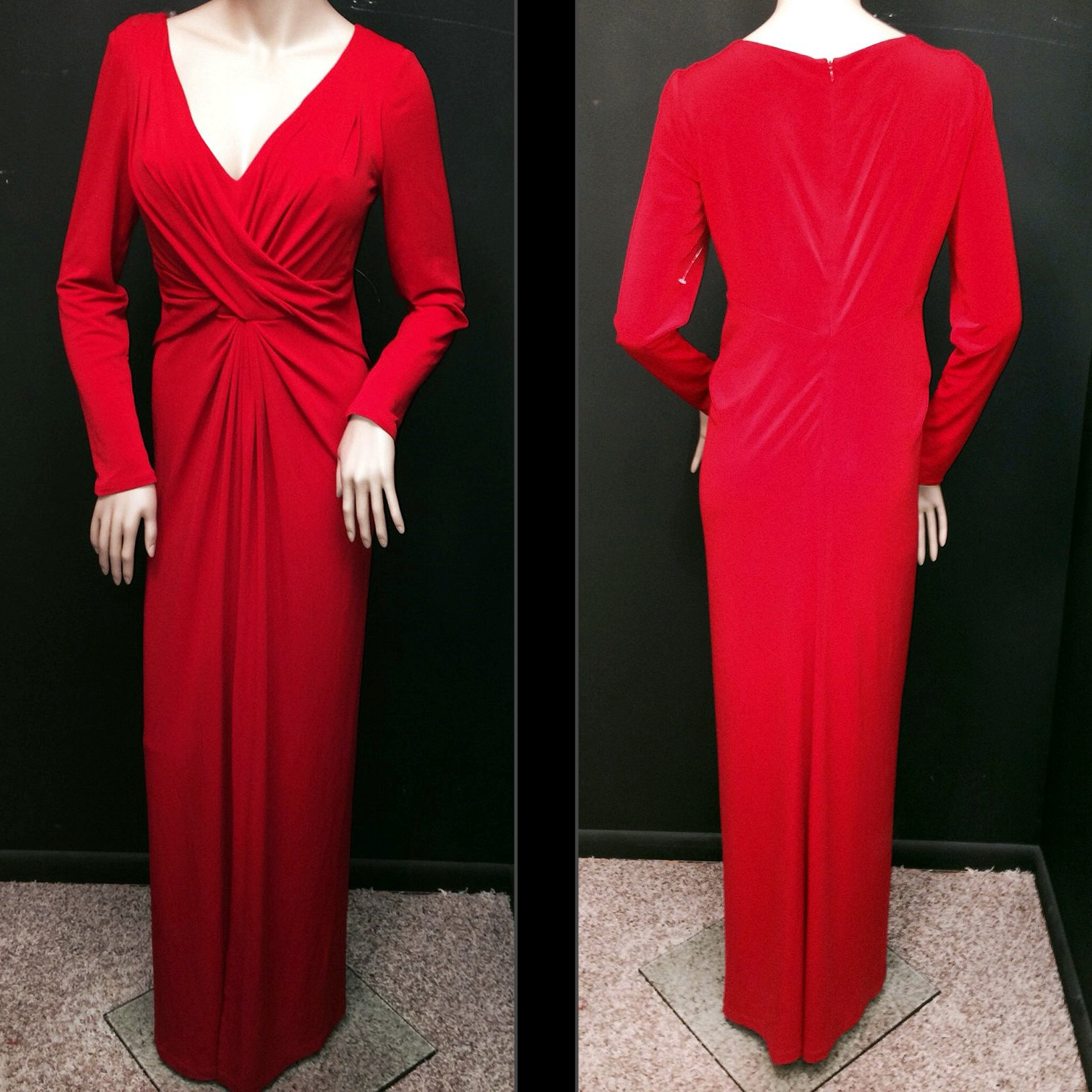 Design #100 Designer: Anne Klein Description: Waist Ruched Red Gown Size: 8 Price: $70